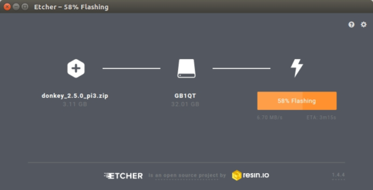 - Get the zip image file RPi 3B and 3B+ from Donkey Car official.