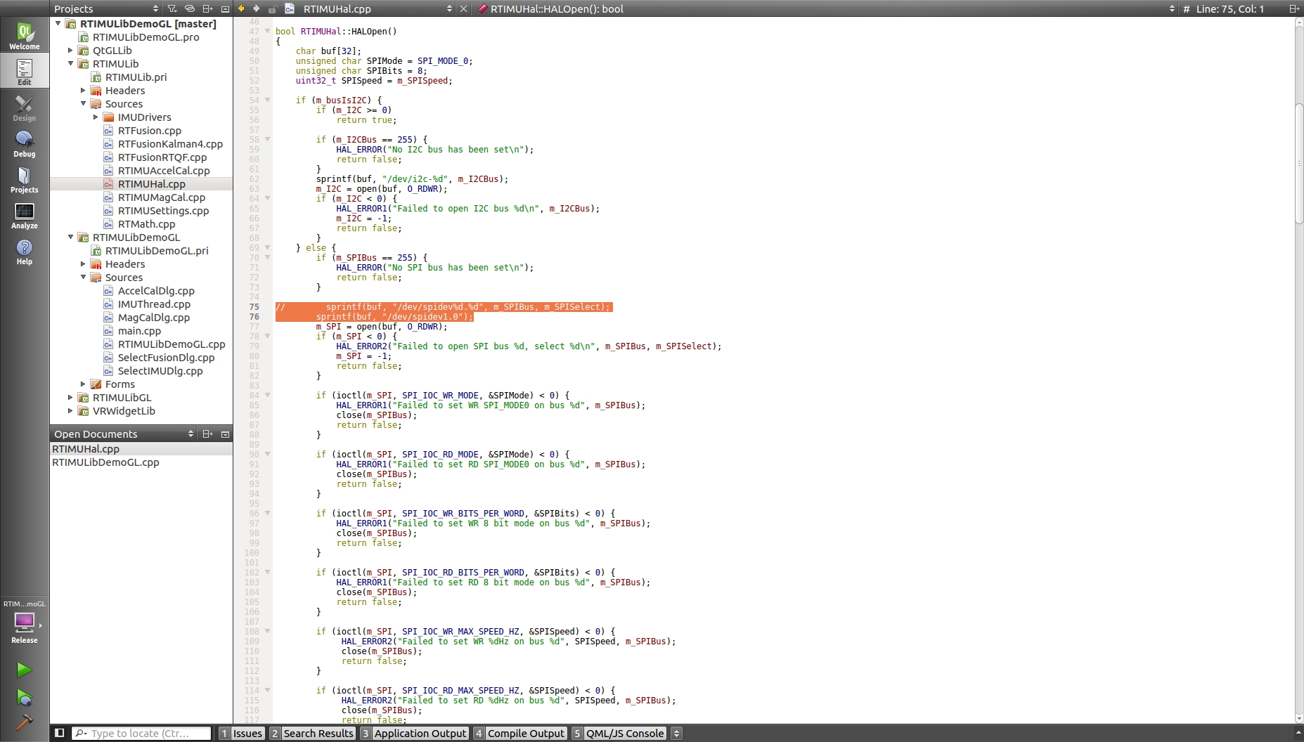 $ qtcreator RTIMULibDemoGL.pro